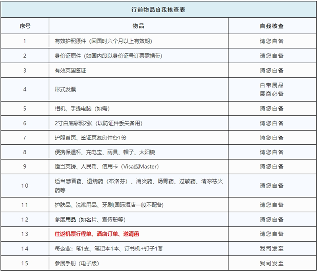 北京標(biāo)典展覽在此預(yù)祝大家行程順利在展會中取得圓滿成功,收獲滿滿訂單!出發(fā)之際,為順利出行請大家關(guān)注以下行前事項~