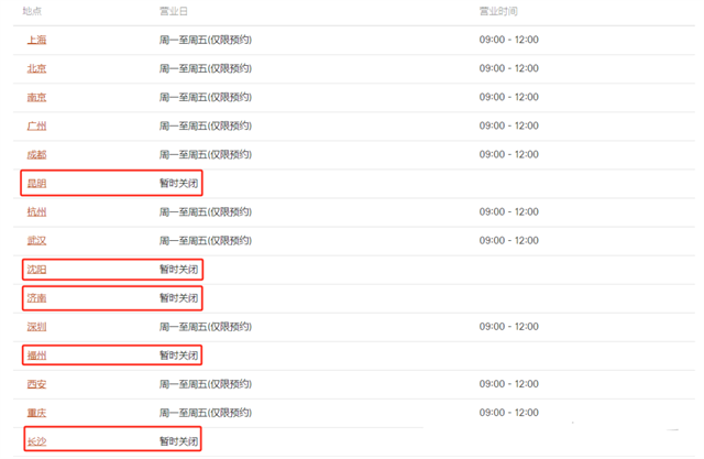 北京領區:北京、廣州、武漢、成都、沈陽;營業時間:每周一至周五上午9:00-12:00(節假日除外)