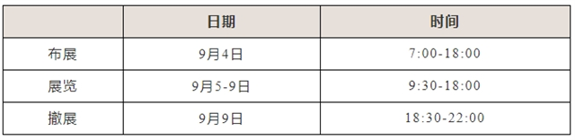 開放時間: 2025年8月30日至9月9日,09:00-18:00
