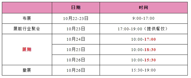 注1:展覽期間,展商可每天7:30-9:30入場(chǎng);
